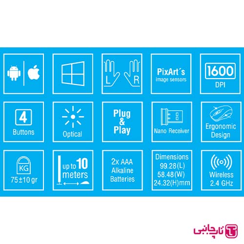- تعداد کلیدها: 4 عدد (چپ، راست، اسکرول، DPI ثابت)