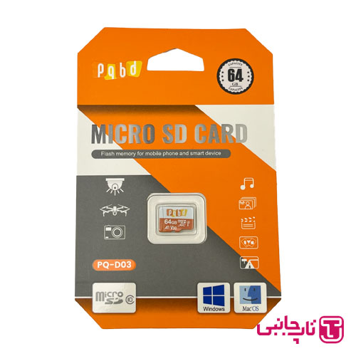 کارت حافظه PQBD MicroSDXC ظرفیت 64 گیگابایت | سرعت 140MBps | مناسب برای موبایل، دوربین و ضبطکنندهها
